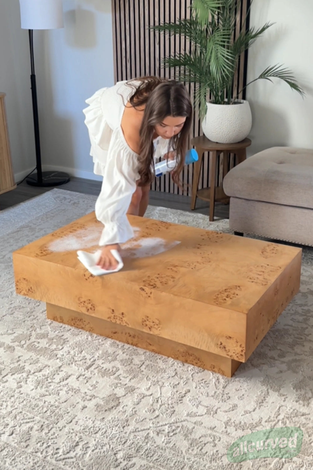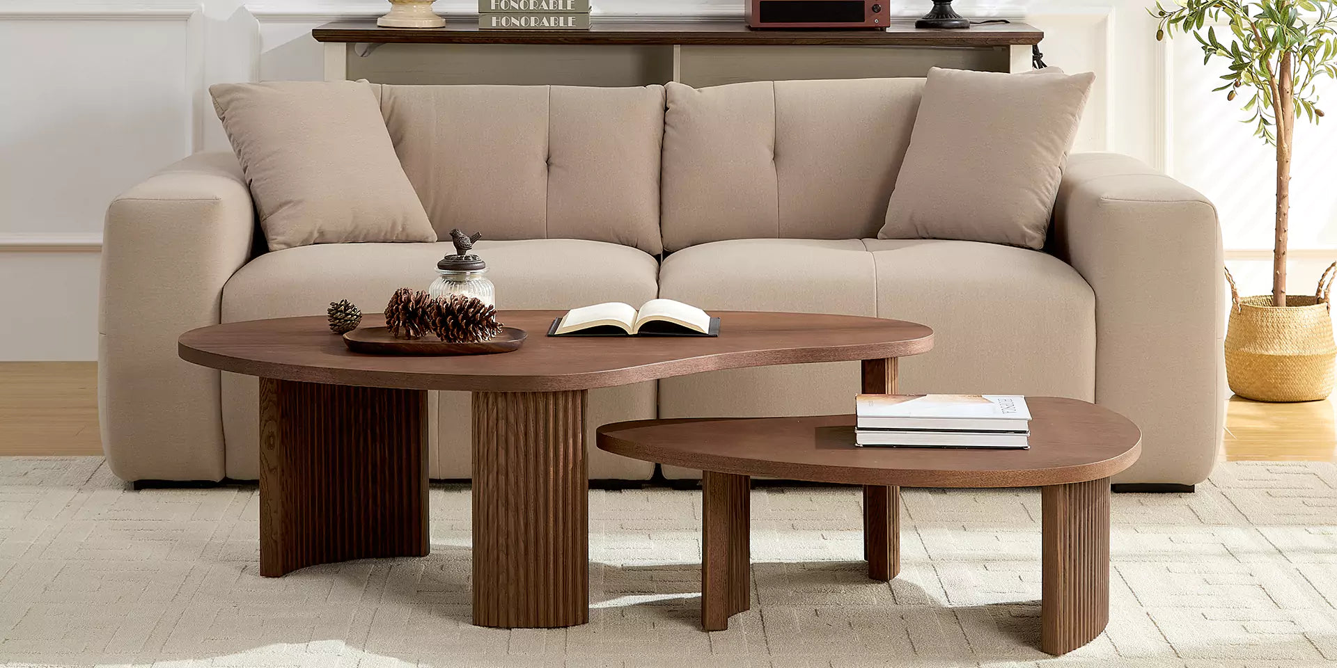 39.4" Modern Coffee Table - Sleek Wood Veneer Top & Stable Pedestal Base for Small Spaces