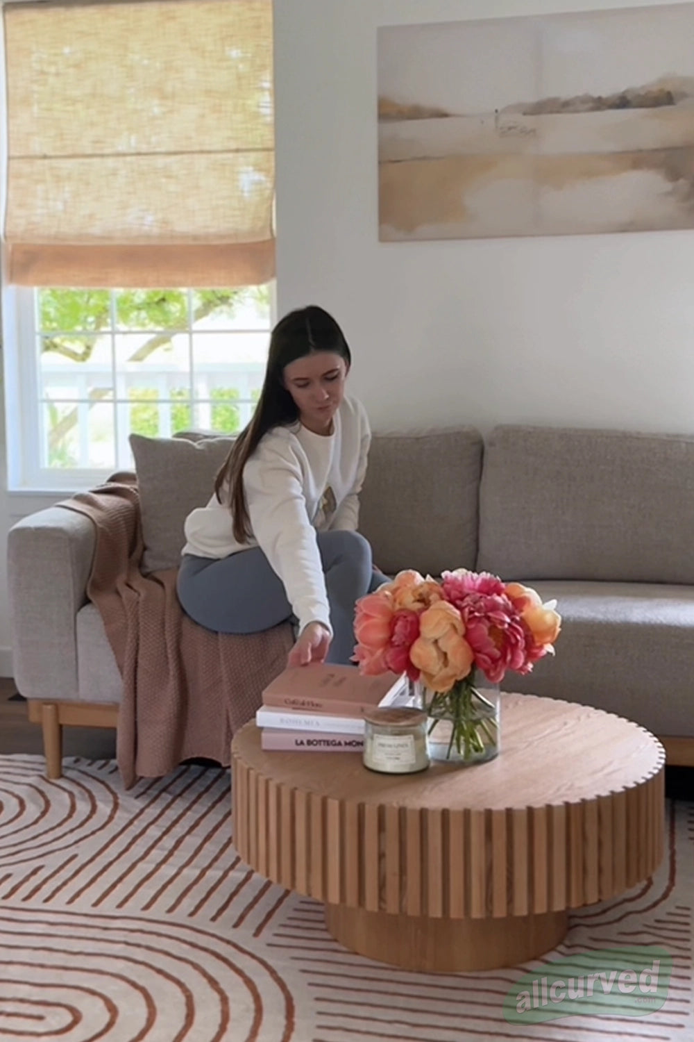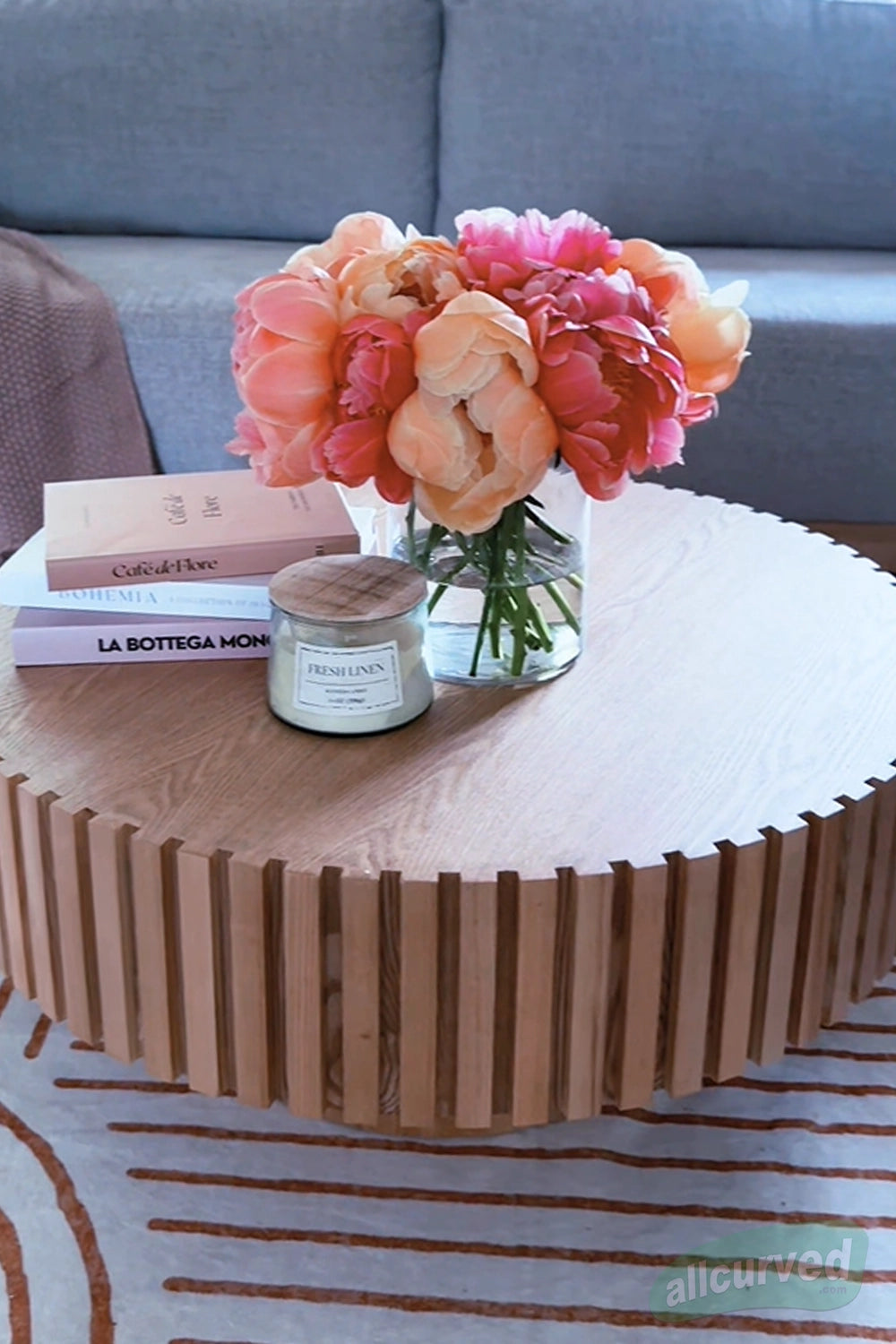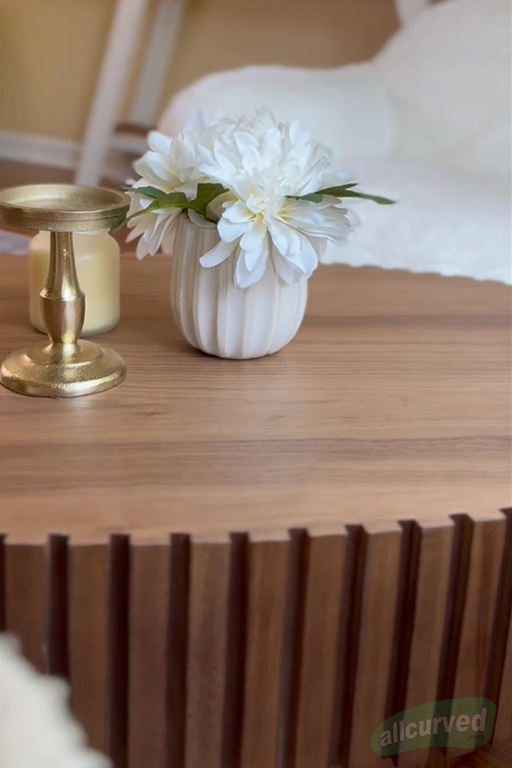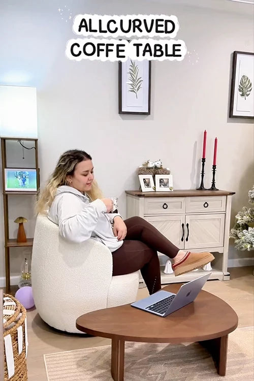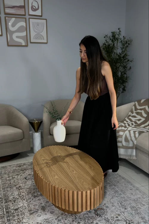 Modern Oval Drum Coffee Table – 43.7 Inch Handmade Wood Center Table for Lounge & Office