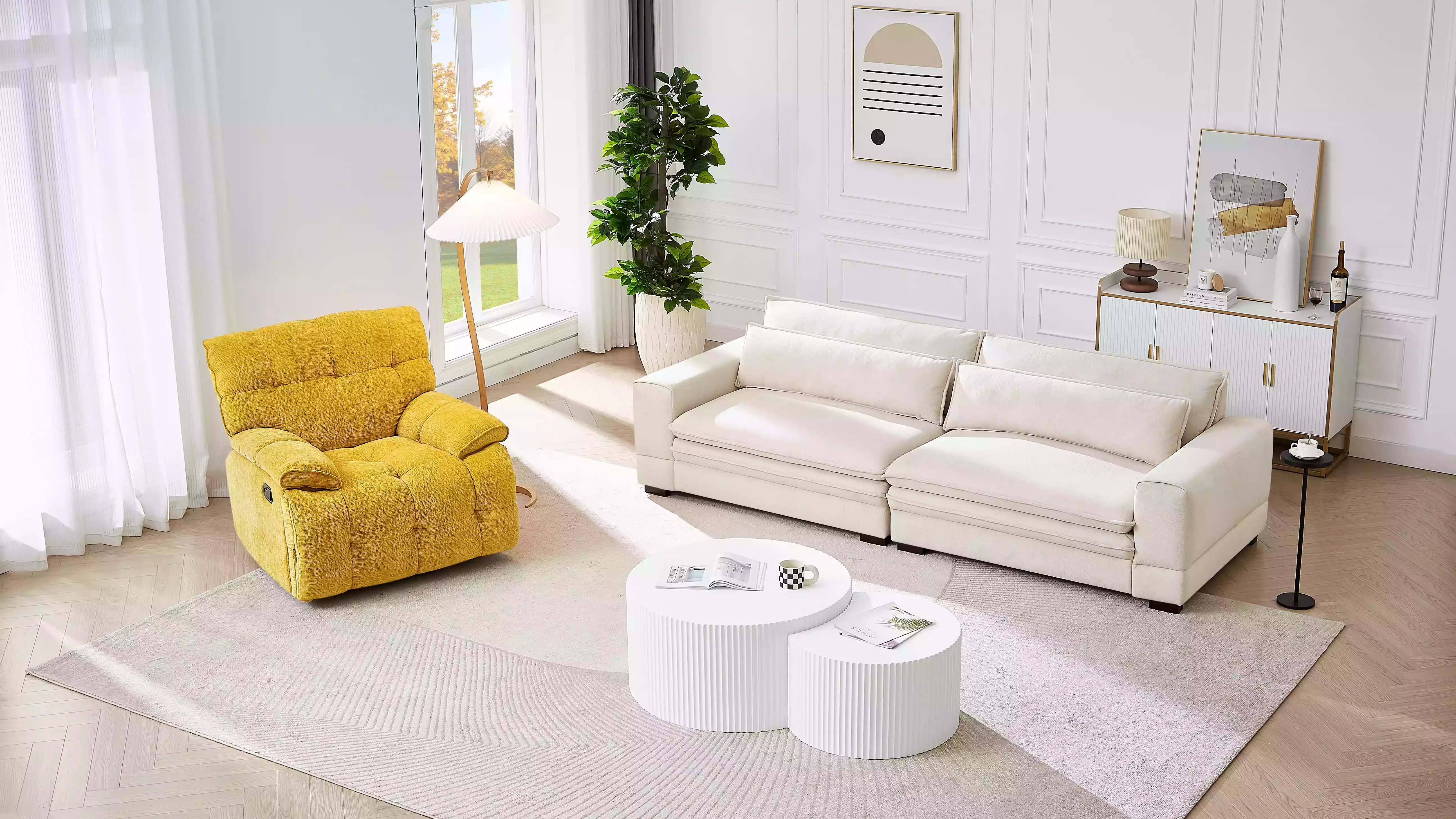 Cream Haven Fabric Mid-Century Sofa Couch Modern Upholstered Couch