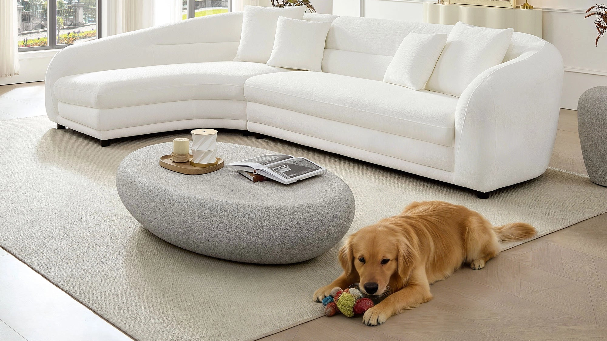 Pebble Coffee Table: 55" Vintage Elliptical Fiberglass Sofa Table