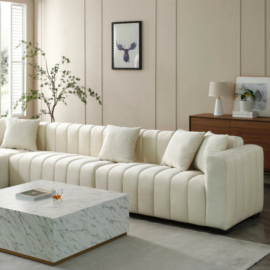 139'' Channel Velvet Material Tufted Sofa Velvet Upholstered Left Chaise Modular Sofa beige