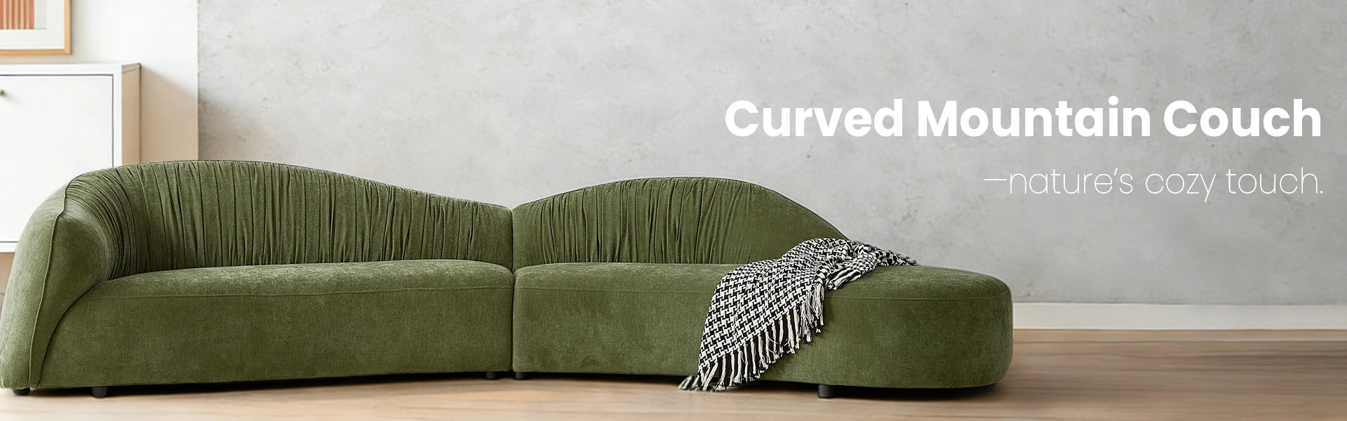 Mountain 145" Mid-Century Green Upholstered Couch with Chaise