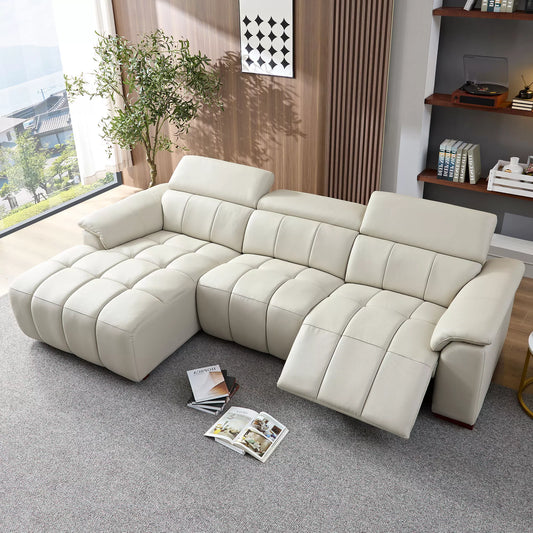 Electric Right-Facing L-Shaped Leather Recliner with USB Port