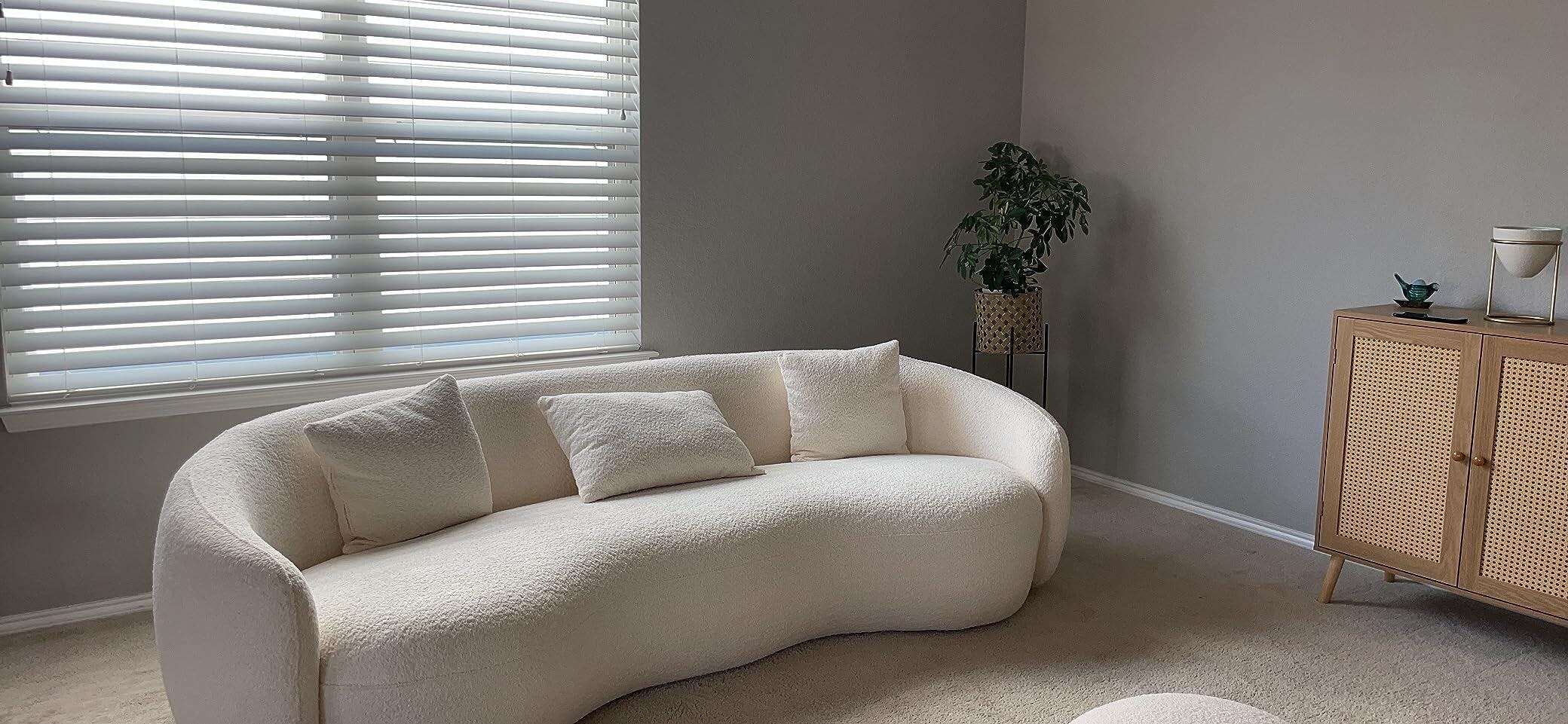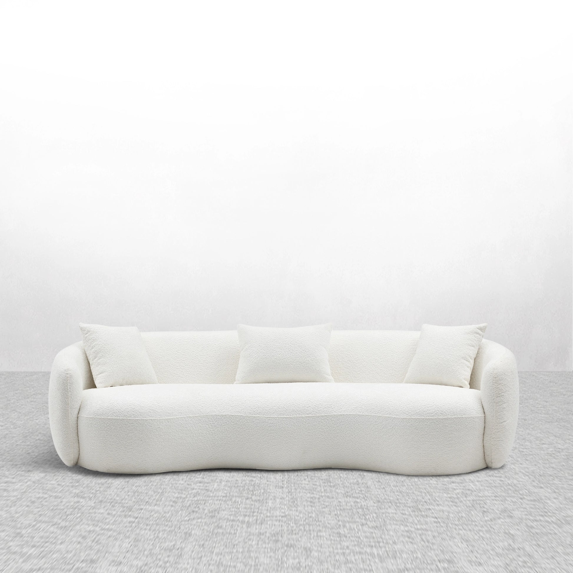 This oversized boucle curved sofa offers the perfect balance of modern design, luxurious comfort, and durable construction, making it an ideal addition to any contemporary living space.