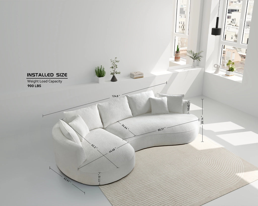 Luxurious Boucle Upholstery: Upholstered with high-quality boucle fabric, this 5-seat sectional sofa offers a luxurious feel and elegant appearance. It’s the perfect spot for relaxing, reading, or enjoying movies in comfort.