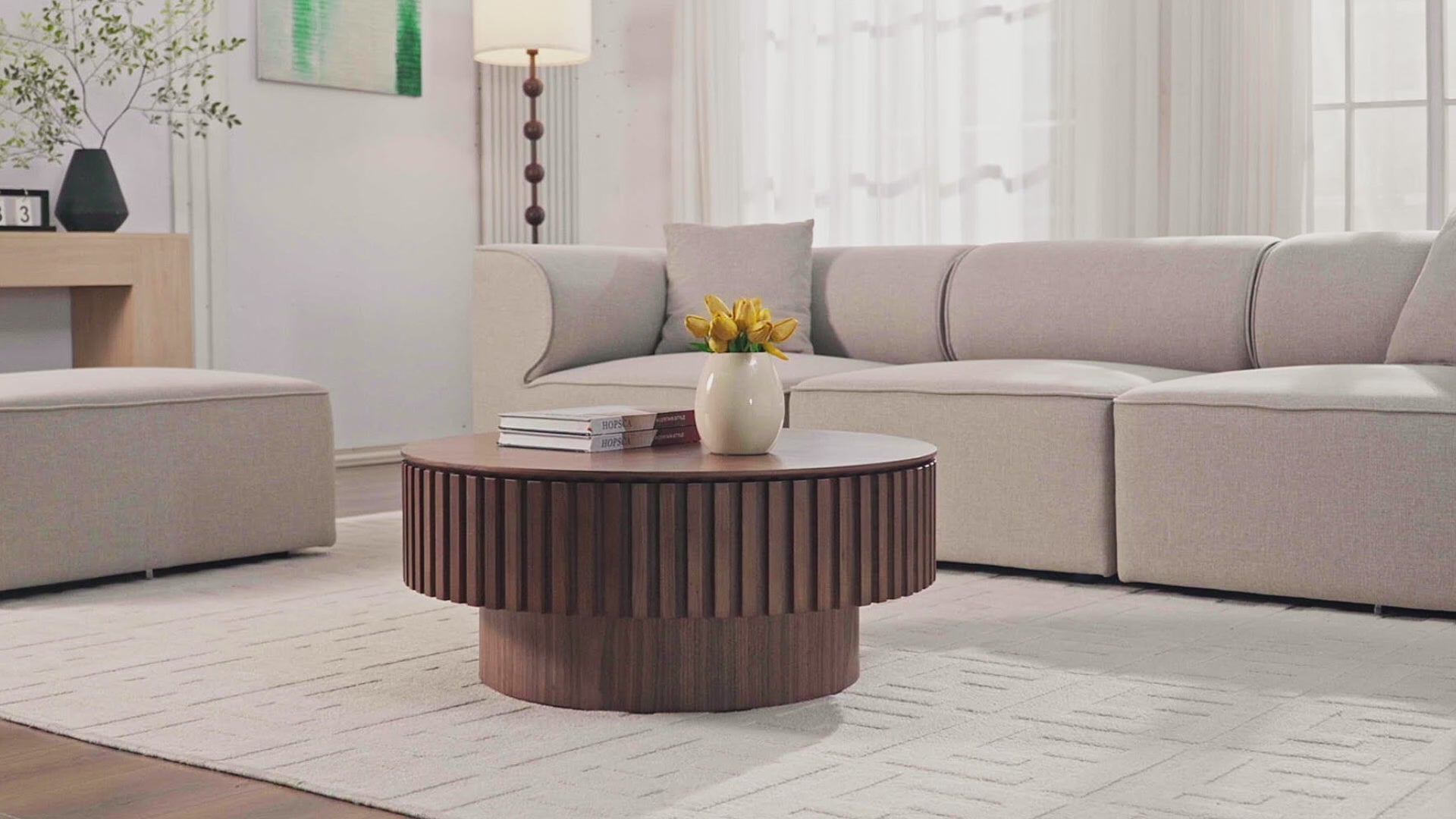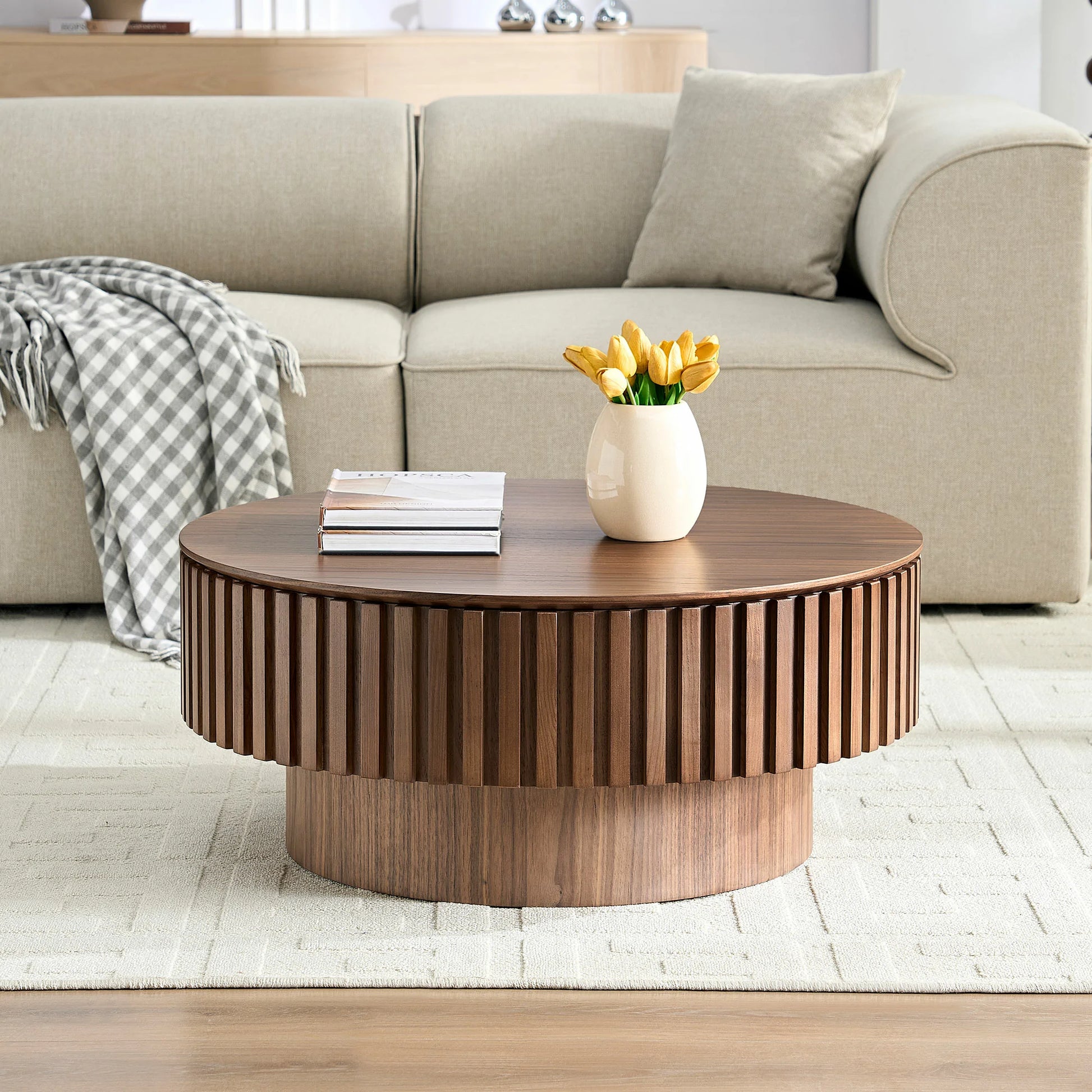 Compact Round Coffee Table with Storage & Pedestal Base - Multi-Color Options