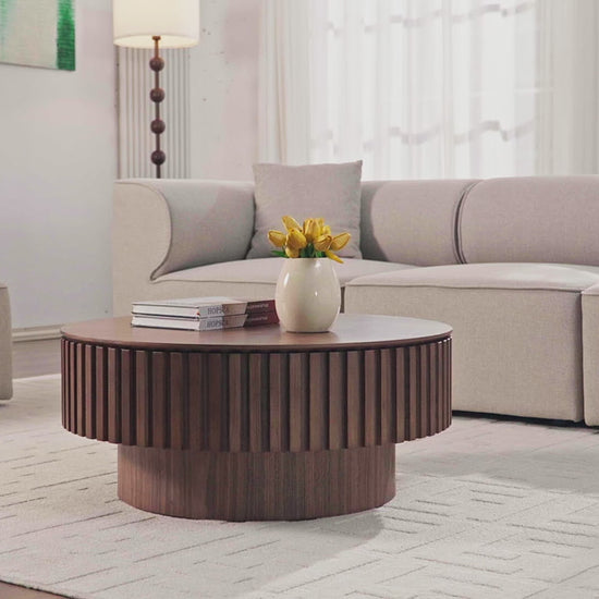 31.49" Round Coffee Table with Storage & Pedestal Base - Multi-Color