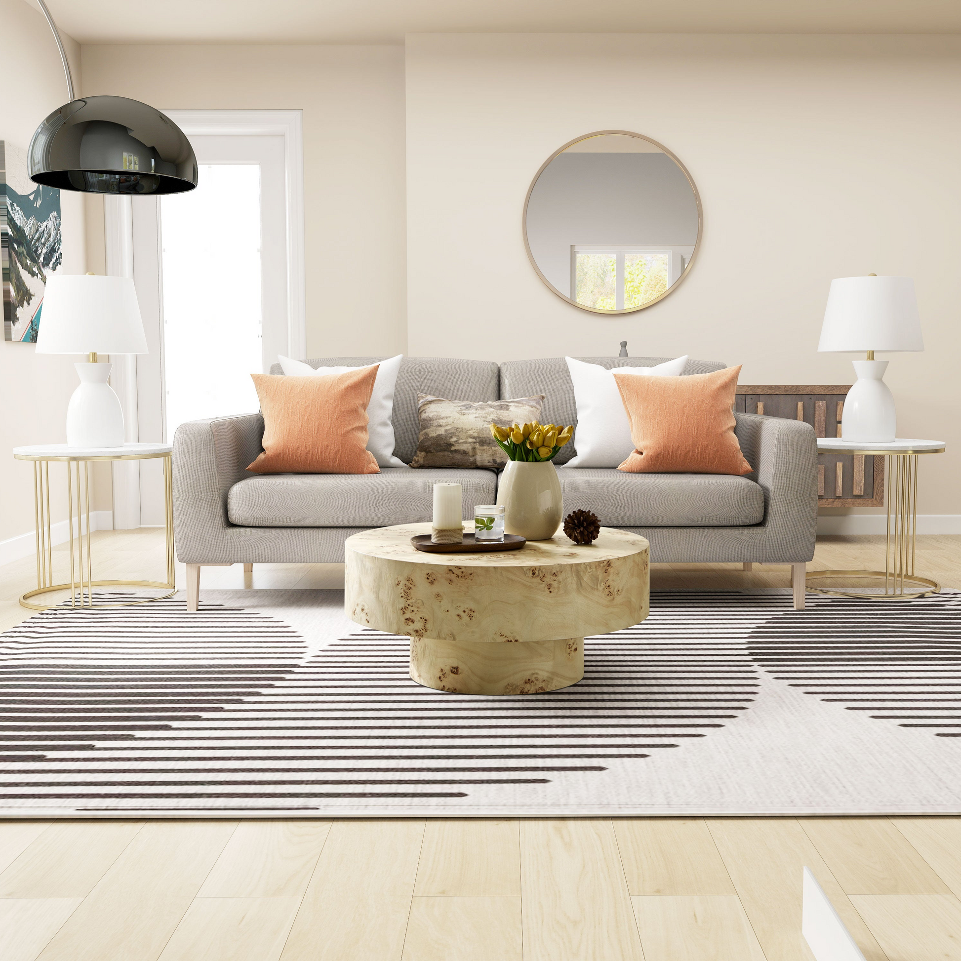 Features premium burl wood veneer with natural grain patterns that add luxurious texture and mid-century modern sophistication to any room.