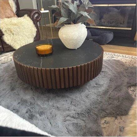 35.43'' Nesting Round Sintered Stone Tabletop Modern Drum Coffee Table