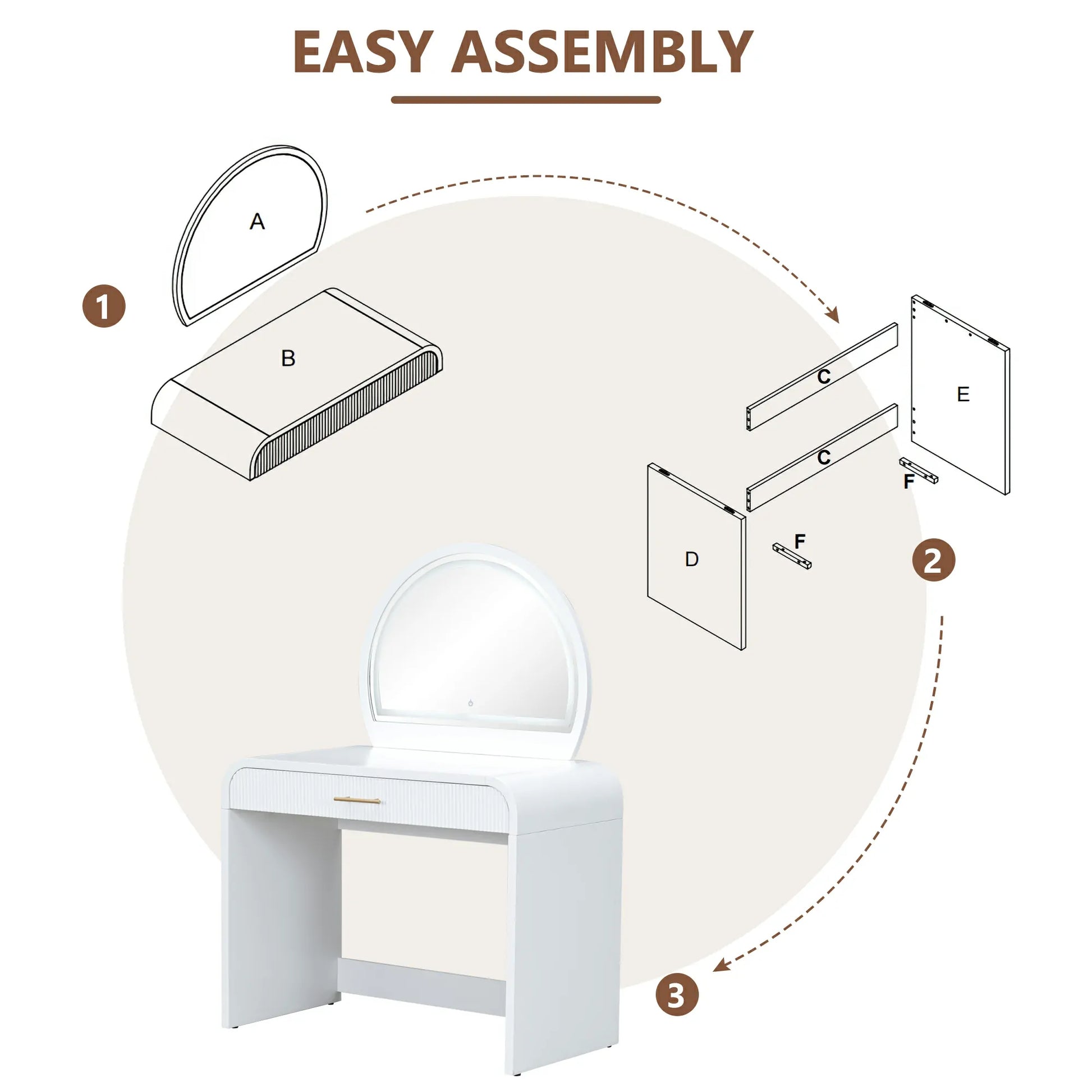 LED Mirror Vanity Table with Curved Design & Removable Dual-Function Desk