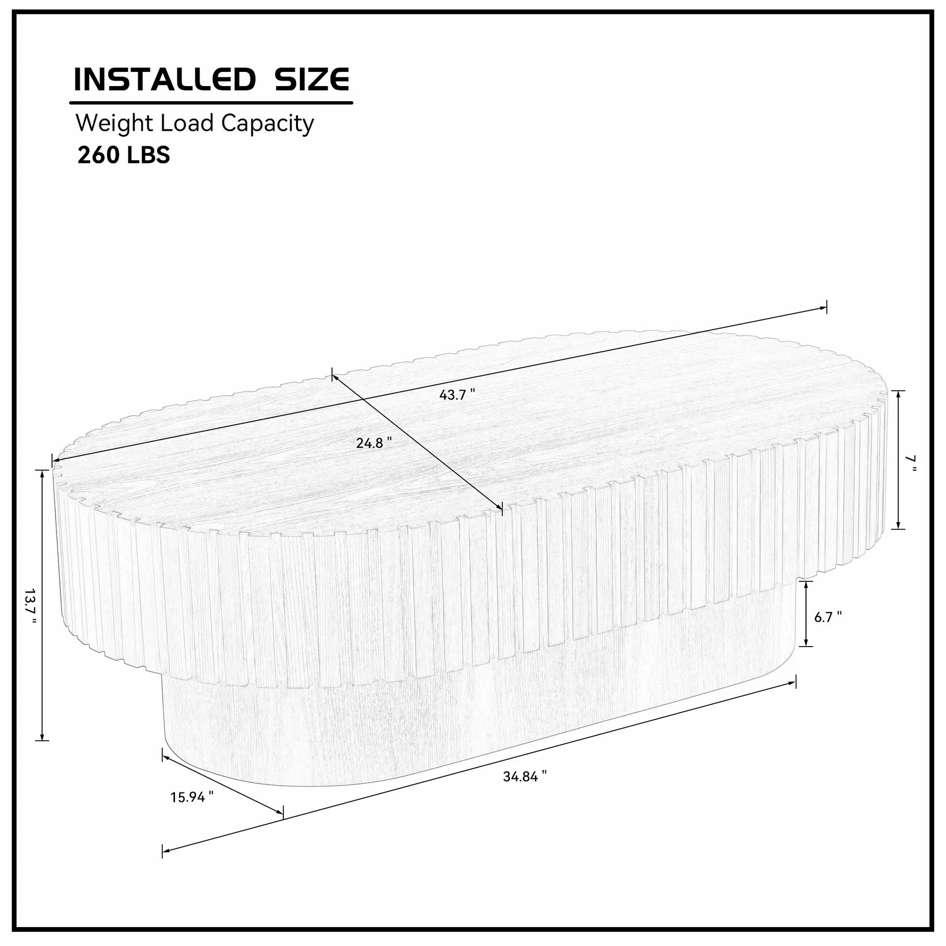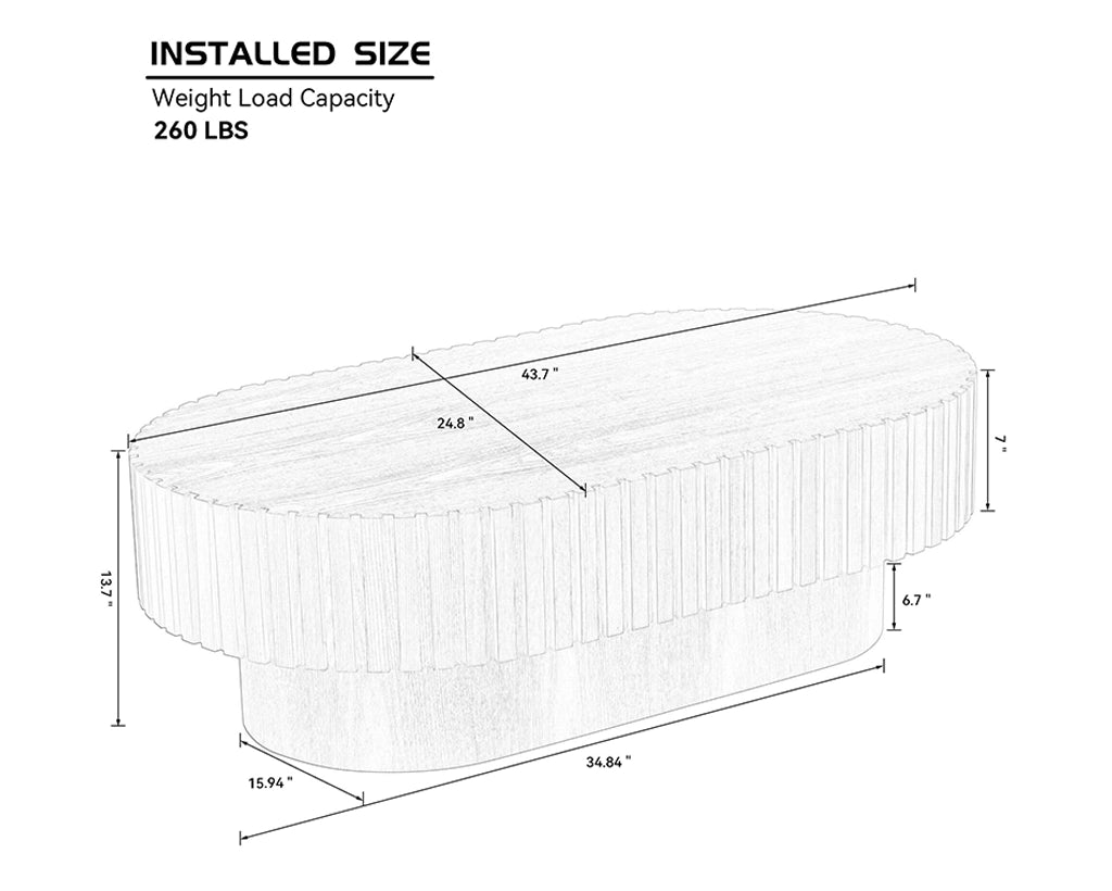 43.7Inch Modern Handcraft Drum Coffee Table Oval Coffee Table