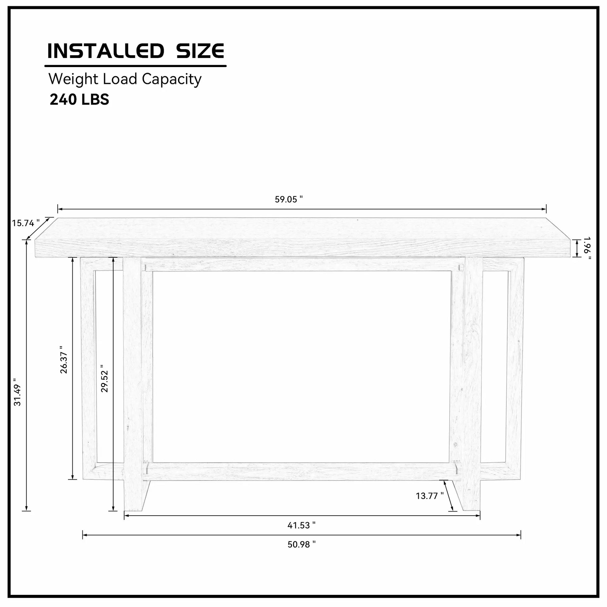 - Perfectly sized at 59.05" L x 15.74" W x 31.49" H, this narrow console table fits effortlessly in tight spaces like hallways, entryways, or behind sofas.