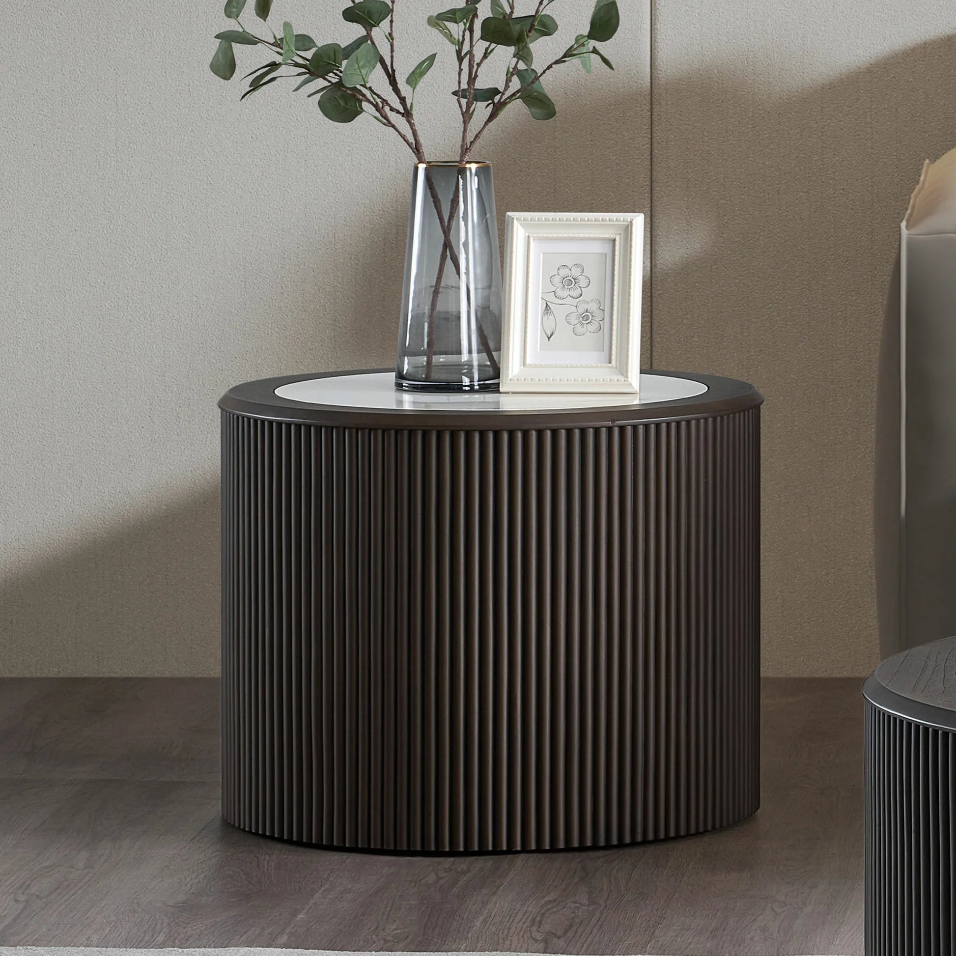 Marble Pattern Side Table with Sturdy Pedestal Base - Compact & Multi-Functional