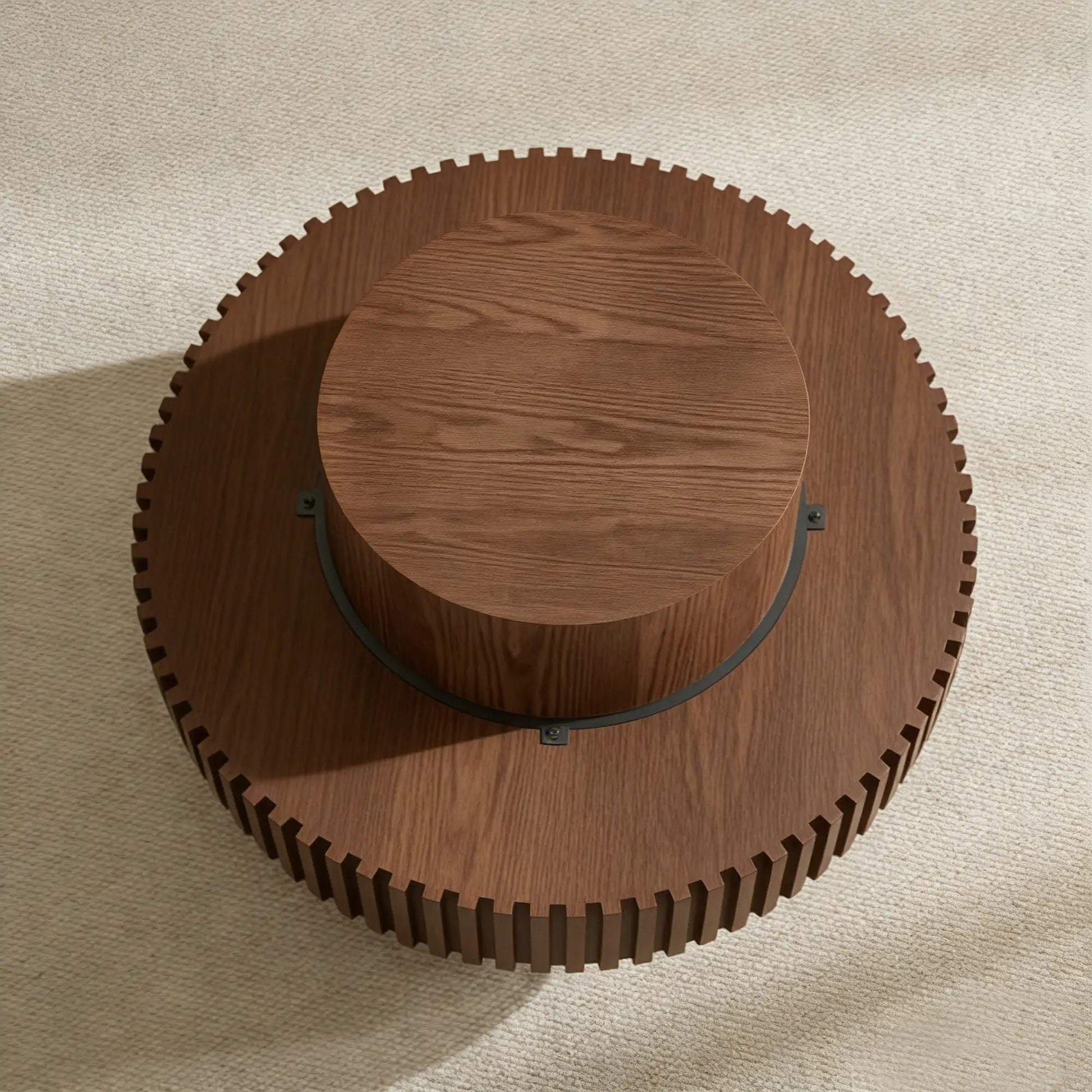 Modern Handcraft Drum Gear Coffee Table with Solid wood trim