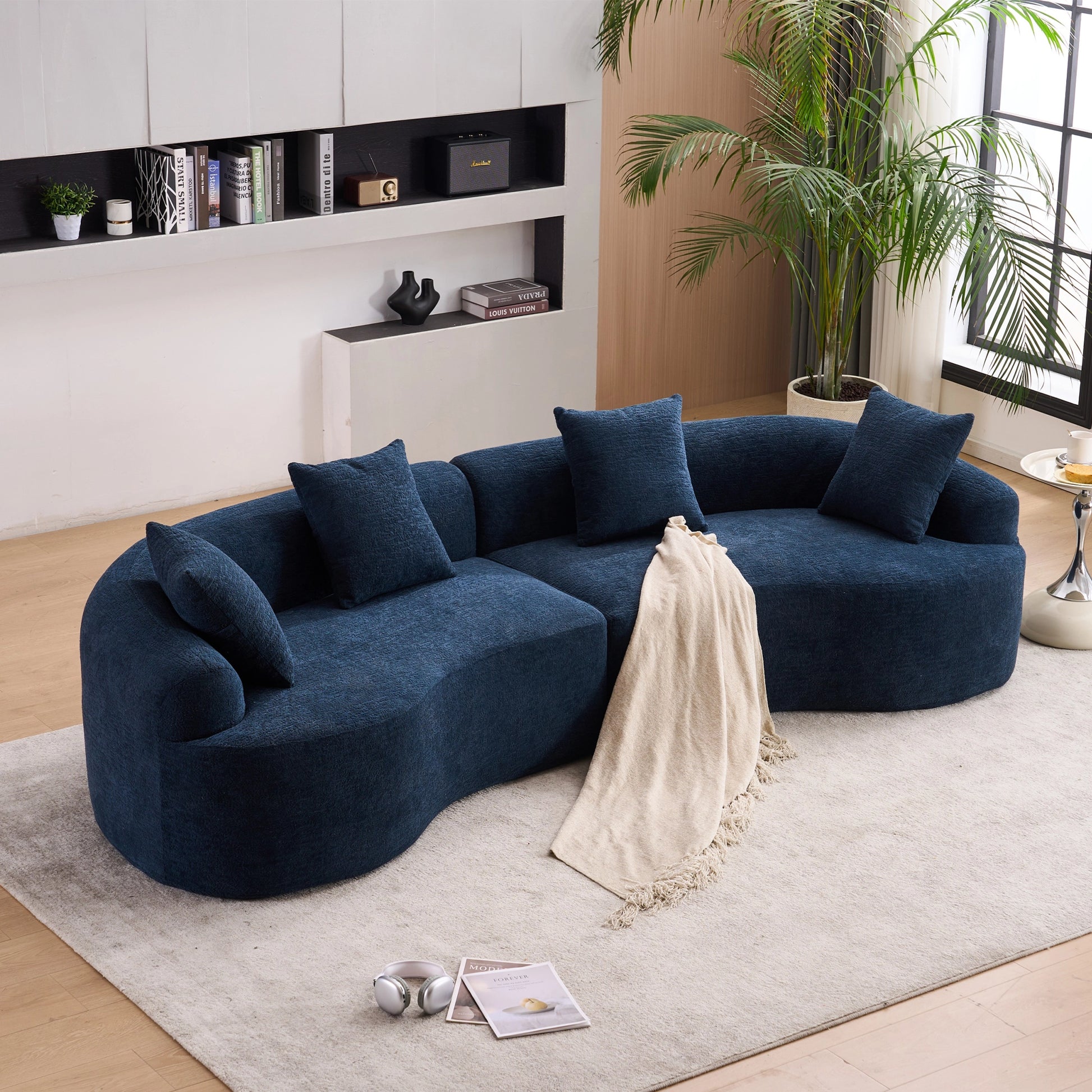 Blue Curved Modular Sectional Sofa, 110" Sleeper with High-Density Chenille