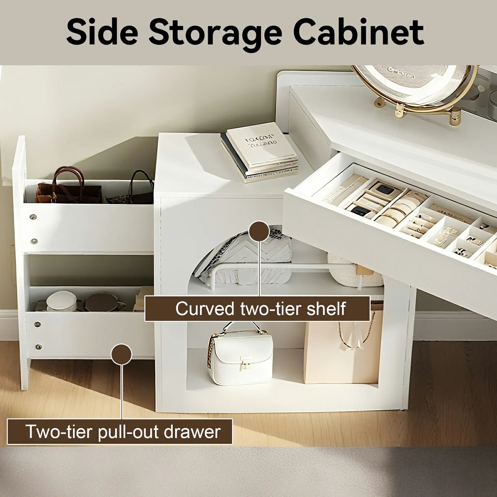 Corner Makeup Vanity Desk with LED Lights, Storage & Stool