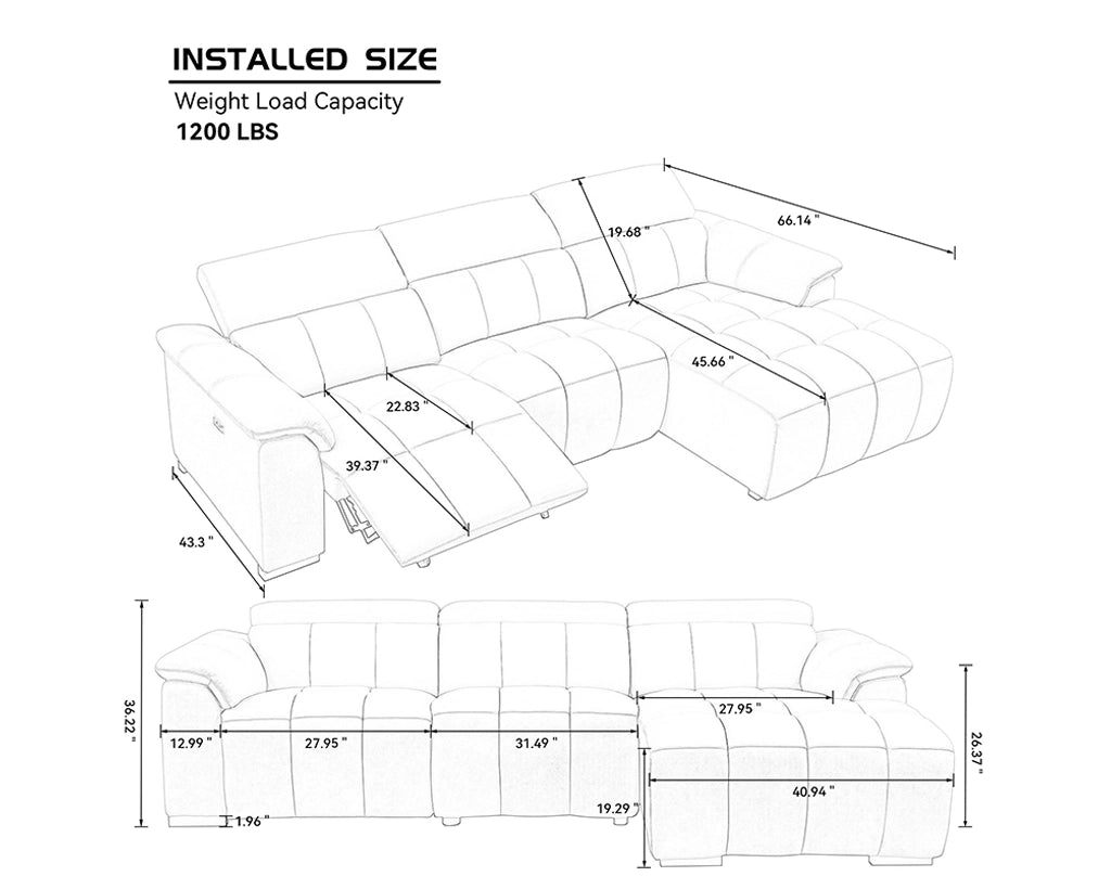 Electric Right-Facing L-Shaped Leather Recliner with USB Port