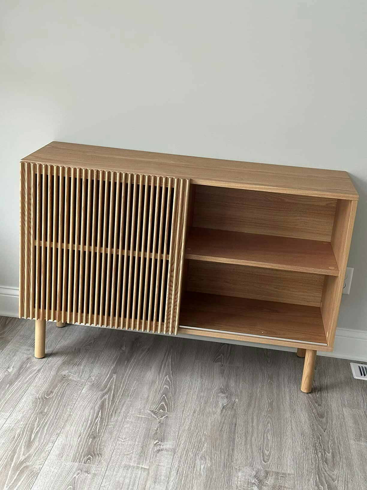 This modern sideboard comes with a combination of open shelves and closed cabinets, offering plenty of storage for your essentials. The three enclosed shelves with doors provide hidden storage, perfect for keeping personal items out of sight.