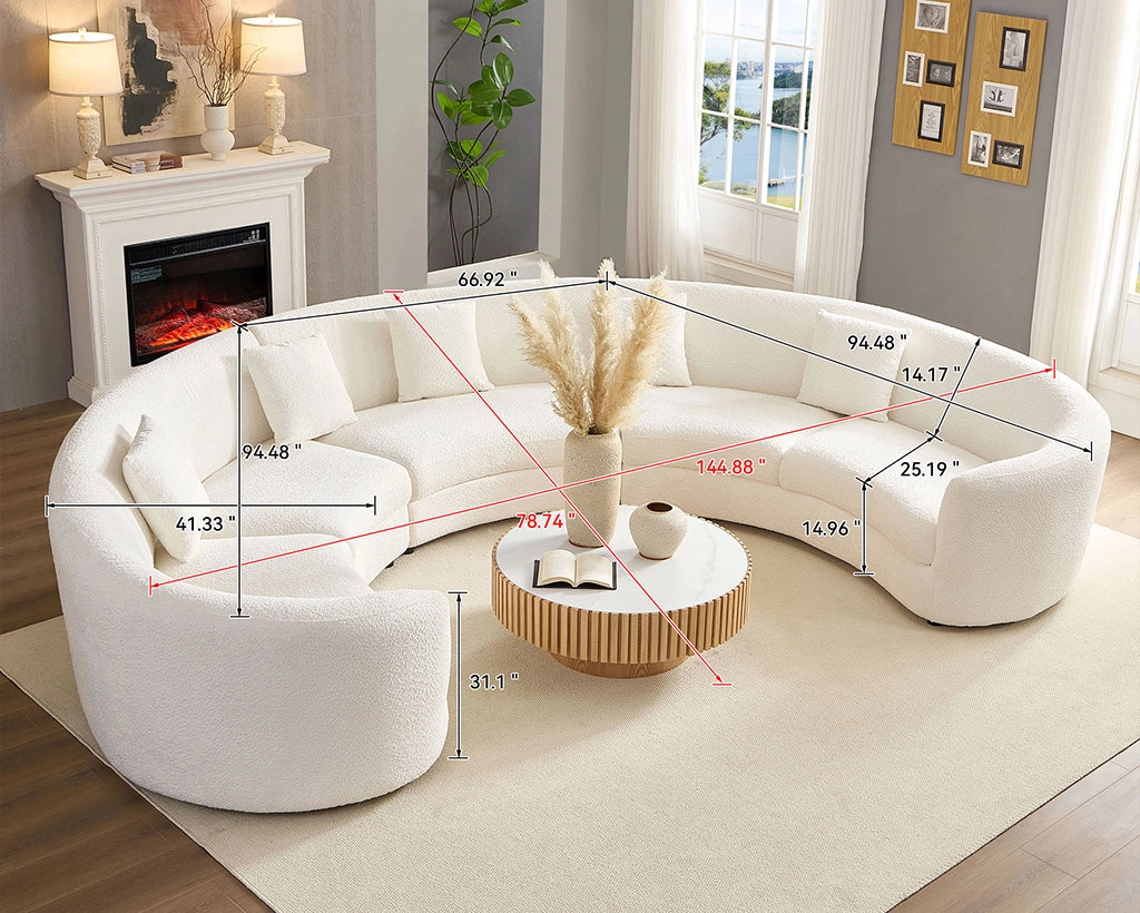 3PCs set Oversized Curved Sectional Sofa, Mid-century Style Couch with 5 Pillows