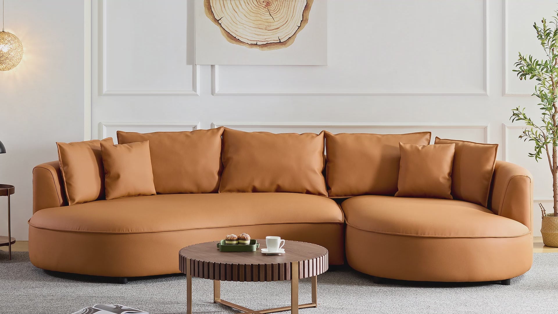 Comfor Sculpted Curve Sofa: 5-Seat Leathaire Cloud with Scratch-Free Assurance