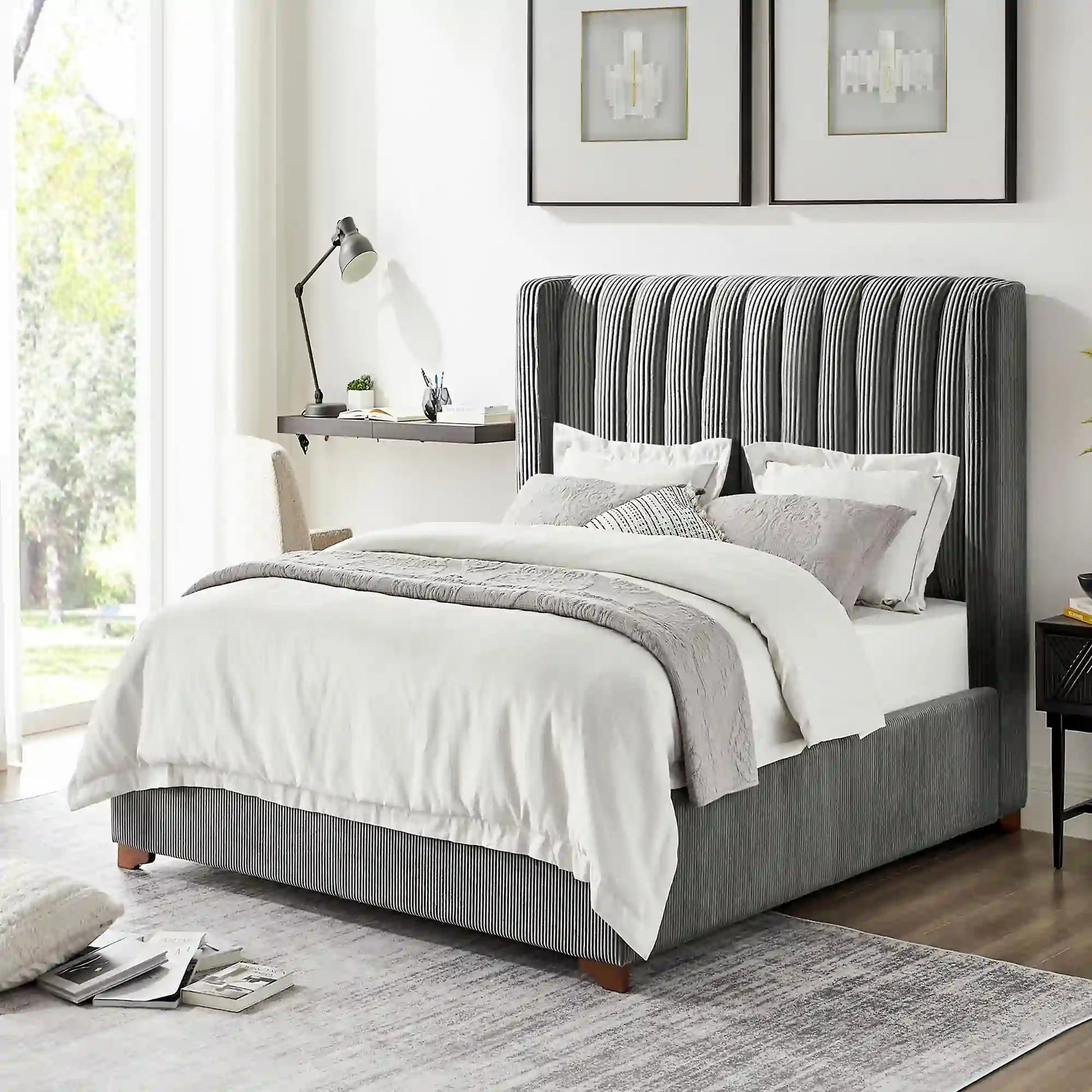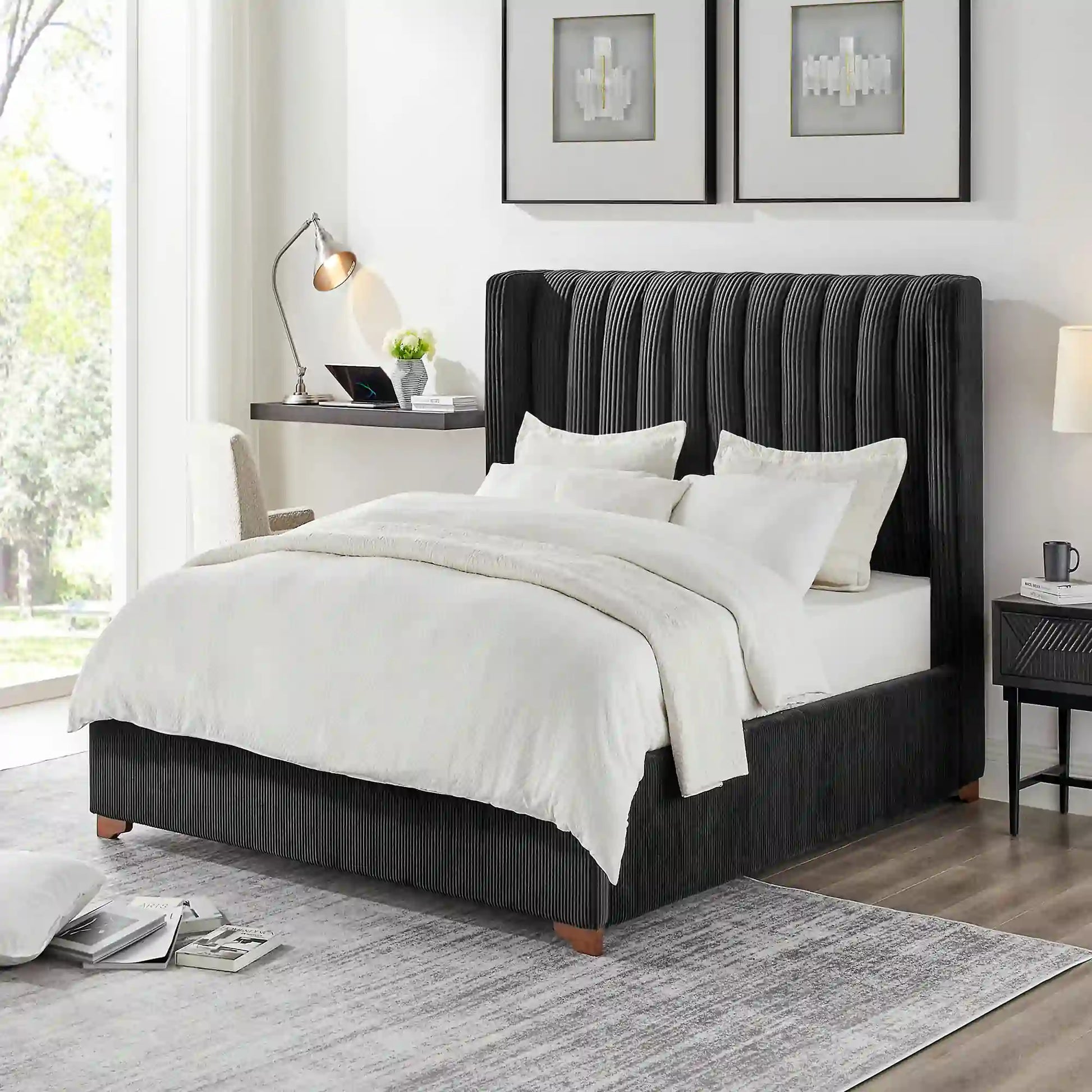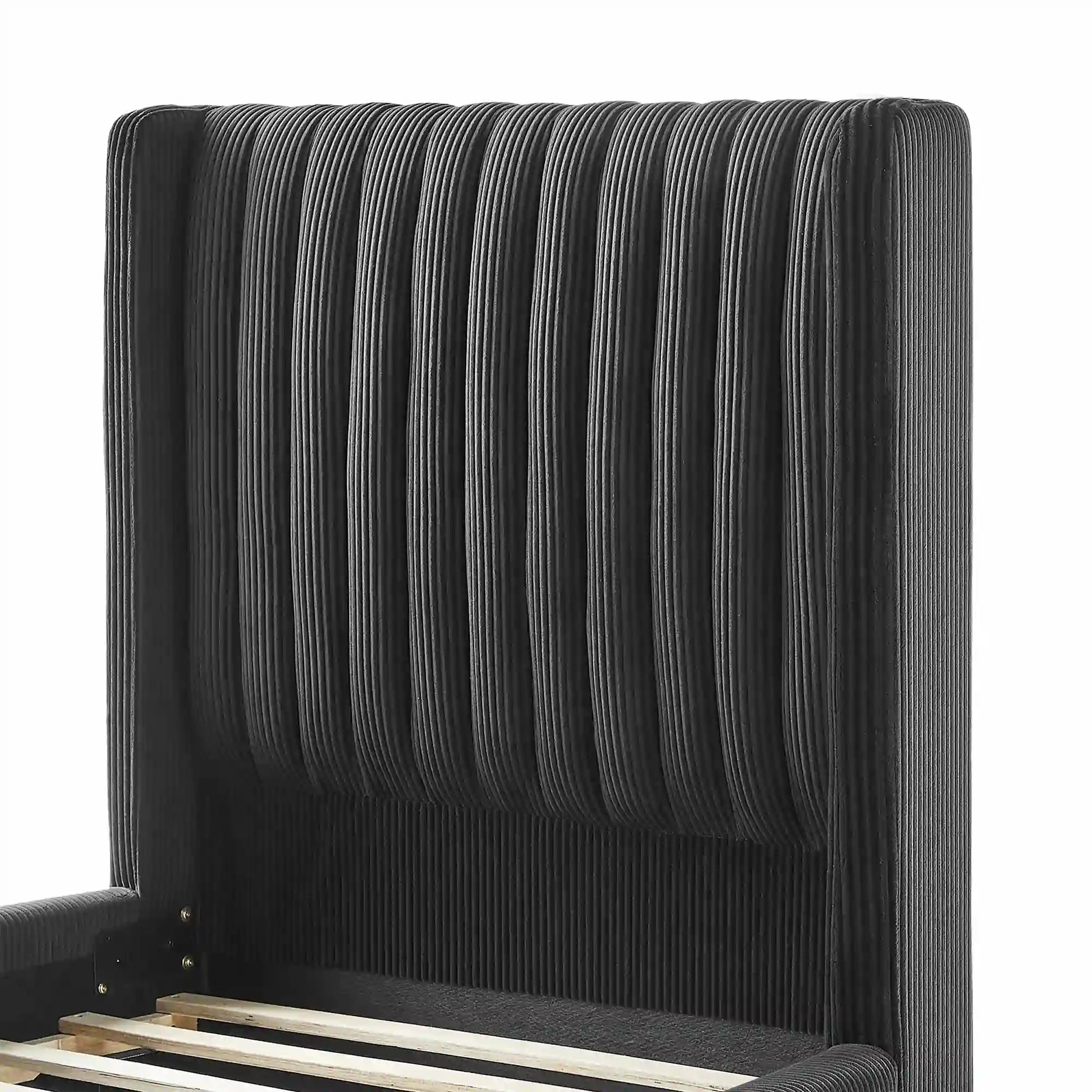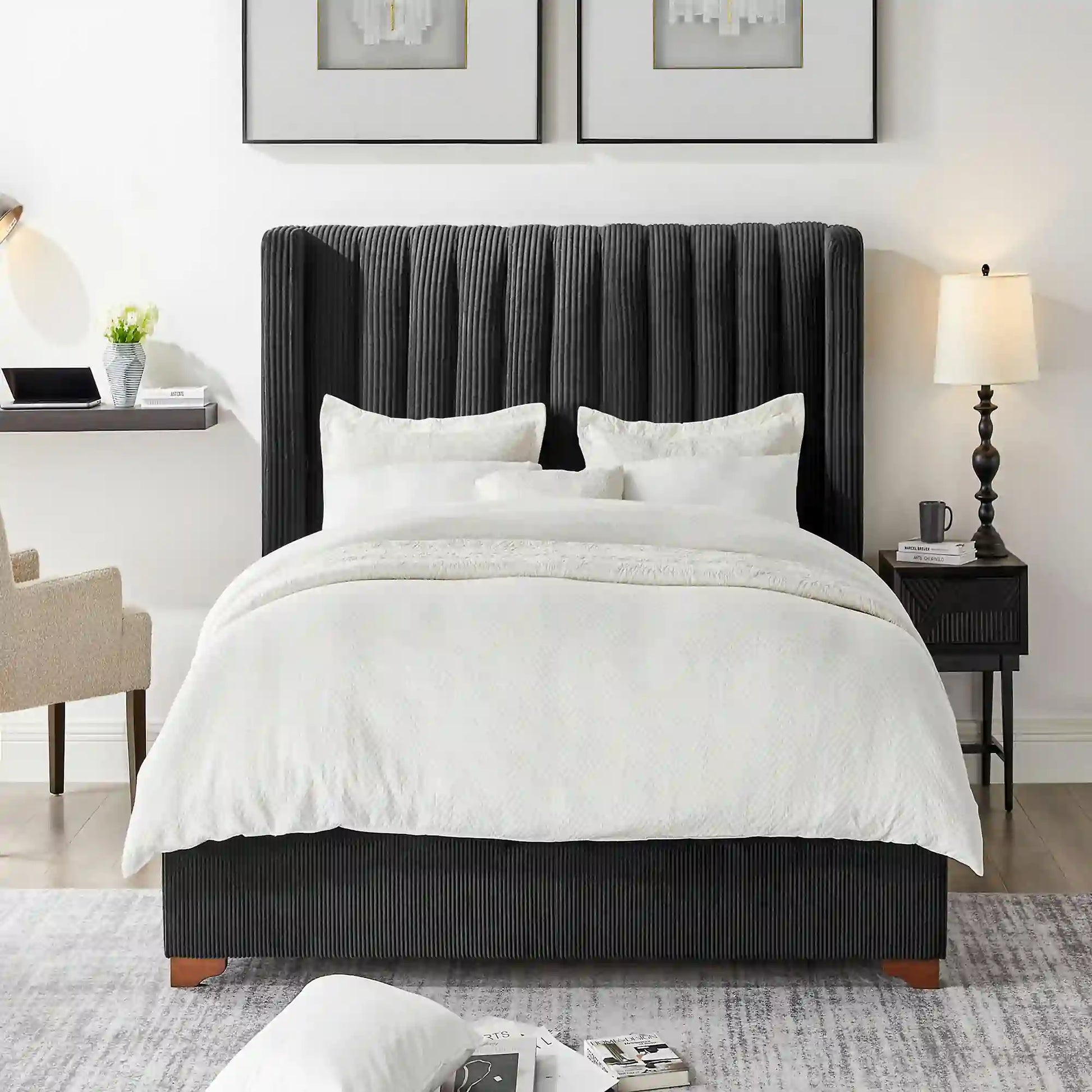 Featuring refined vertical detailing and gracefully streamlined contours, this wingback silhouette delivers harmonious symmetry and a sophisticated presence. Its modern structure seamlessly integrates clean lines with high-end design aesthetics, creating a more unified and harmonious style for the bedroom.