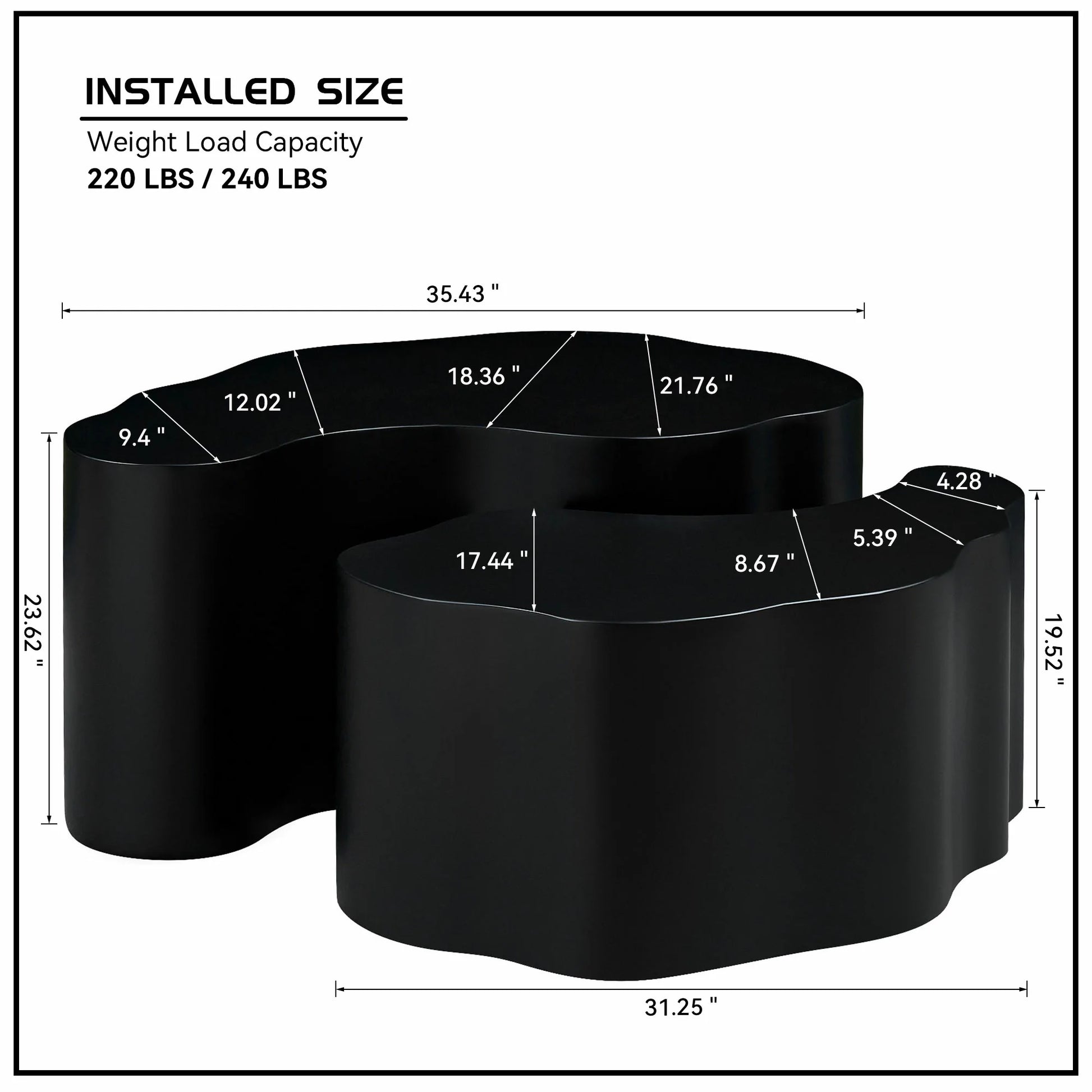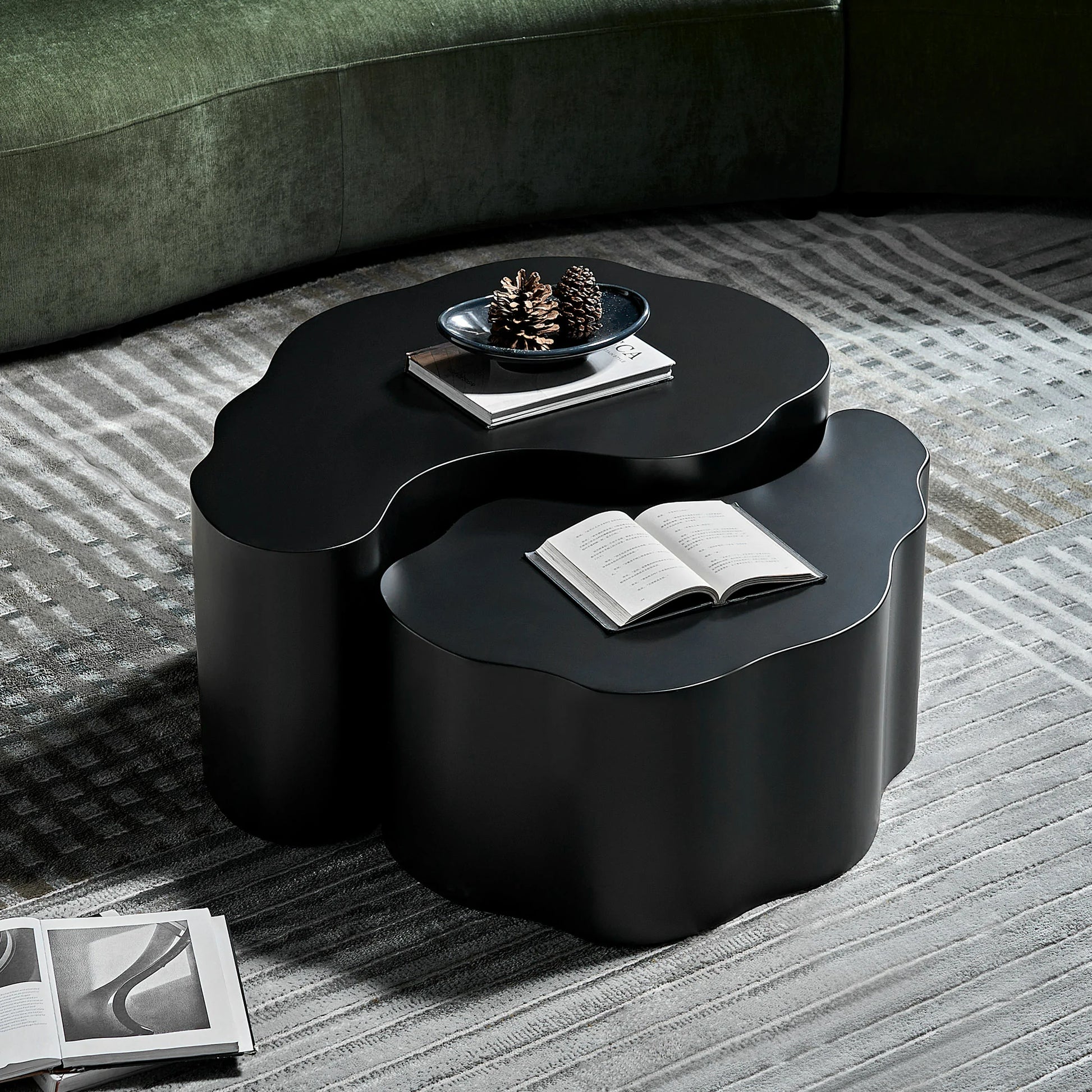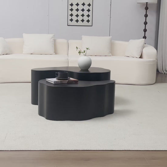 Unique Shape MDF Nesting Table Set of 2 - No Assembly, Black